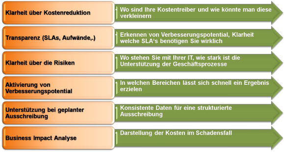 Wir sorgen für Klarheit über die benötigten IT-Services in direktem Bezug auf die eigenen kritischen Geschäftsprozesse. Dadurch ist es Ihnen möglich eine bedarfsgerechte IT Ausrichtung vorzunehmen und dass in direktem Zusammenhang durch Betriebsführungsstrategien: